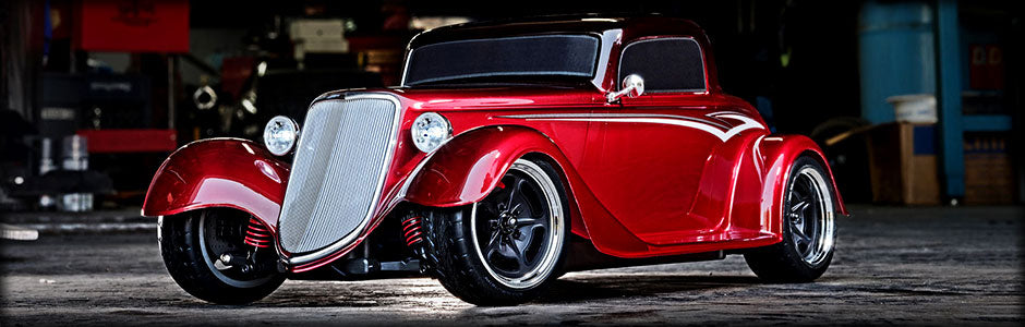 MODEL 93044-4: 1/10 scale Factory Five replica Hot Rod with 1933 Coupe ProGraphix® body, fully assembled, Ready-To-Race®, with TQ™ 2.4GHz Radio System, XL-5® Electronic Speed Control, and Titan® 12T 550 motor.